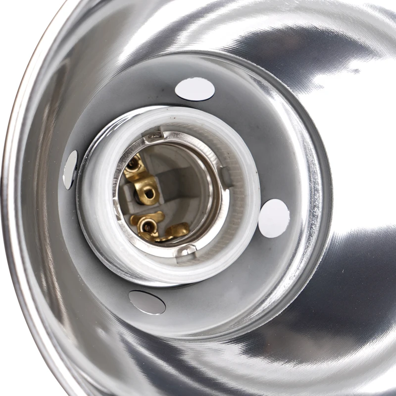 Dôme en aluminium poli pour un rendement lumineux et UV maximal, adapté aux ampoules à incandescence, aux dissipateurs thermiques en céramique, aux lampes halogènes et aux lampes à vapeur de mercure.