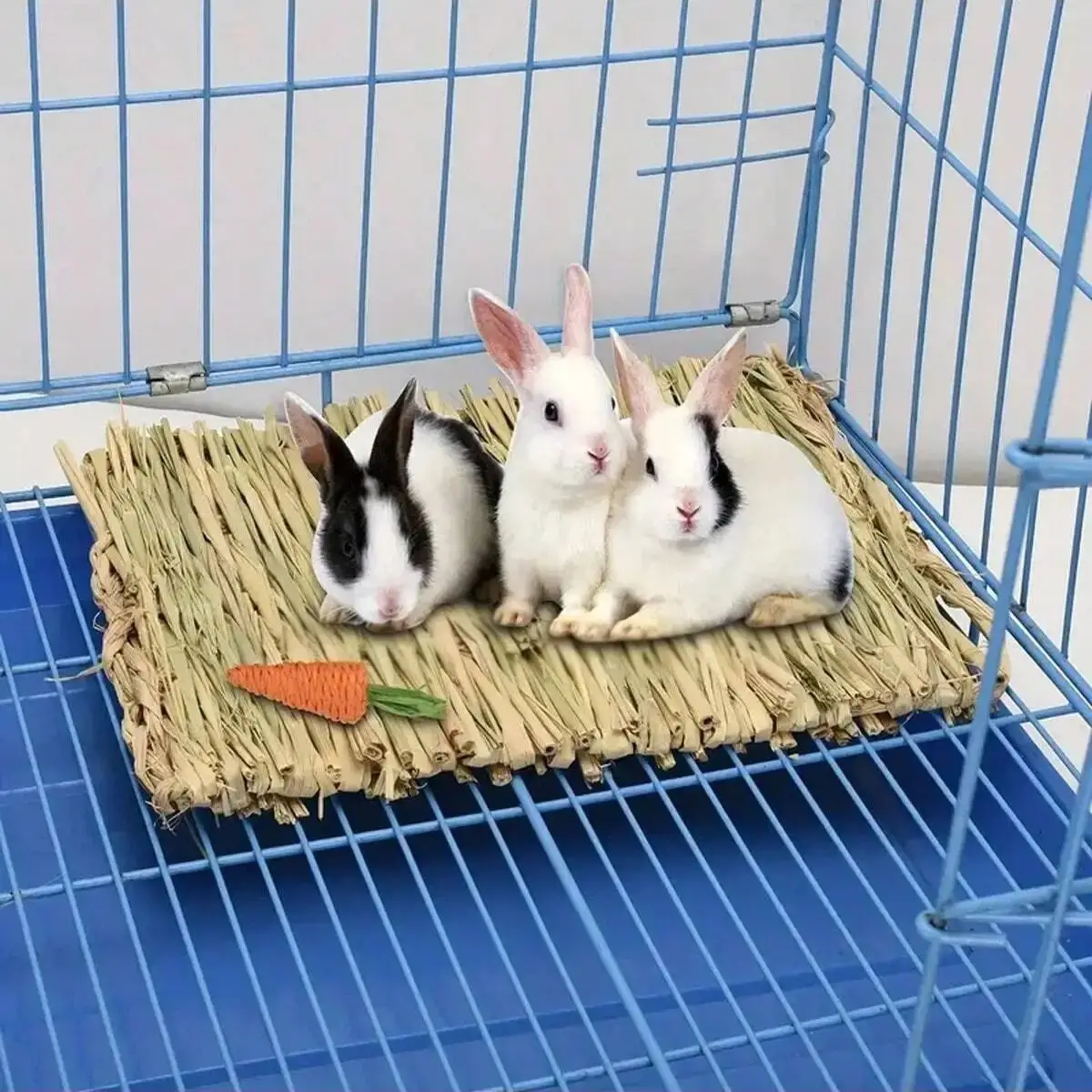 Ces tapis pour lapins sont fabriqués à partir de paille 100 % séchée, tissés à la main, non toxiques et hypoallergéniques, pour une sécurité optimale de vos adorables animaux de compagnie.